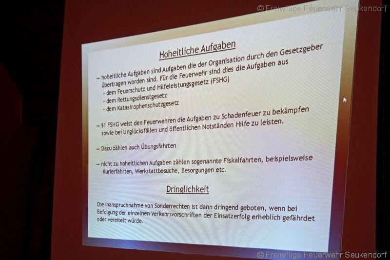 In der ersten Zugübung des Jahres 2018 standen die Unterrichtsthemen UVV (Unfallverhütungsvorschriften) und die Fahrerbelehrung für die aktive Mannschaft auf dem Plan.