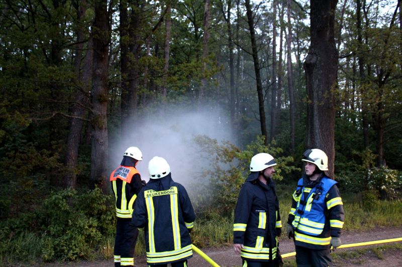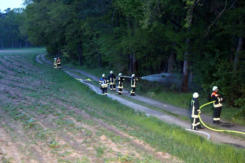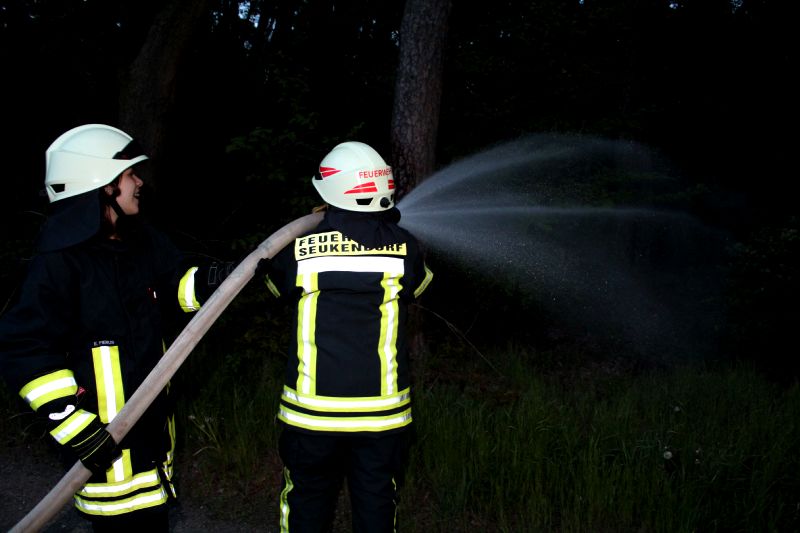 Nachdem das Wetter zunehmend wärmer und trockener wird, wurde in der Zugübung des Montas Mai das Thema „Waldbrände“ behandelt. Hierzu wurde das richtige vorgehen erklärt und praktisch geübt. Als Wasserentnahme gab es einen Weiher (welchen wir mit freundlicher Genehmigung vom Besitzer für diese Übung nutzten durften). Dort wurde das TSF mit seiner TS 8/8 stationiert um das benötigte Löschwasser zur „Löschkette“ zu befördern.