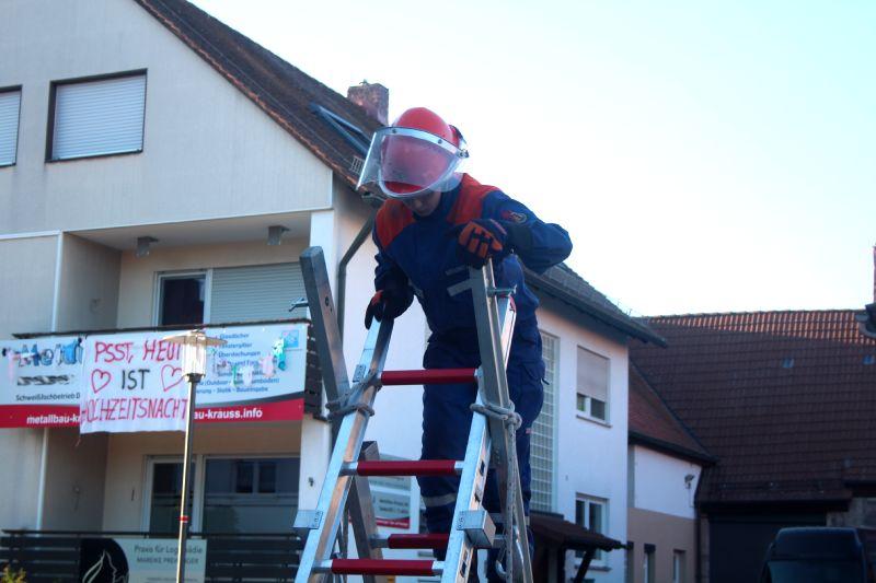 Am 08.09.2020 waren unsere Jugendlichen wieder etwas kreativ gefragt. Es galt aus Geräten und Material vom HLF eine Bockleiter zu bauen und im weiteren Verlauf der Übung eine Schlauchbrücke.