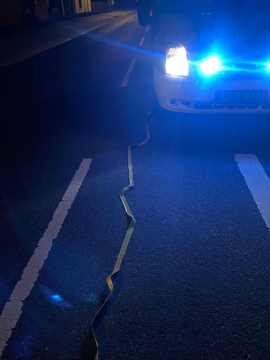 Die Freiwillige Feuerwehr wird nicht nur durch die Leitstelle (Notruf) alarmiert. Auch aufmerksame Bürger melden sich bei kleineren Sachen telefonisch bei unseren Kommandanten welche sich die gemelde Lage dann erstmal anschauen und das weitere Vorgehen entscheiden. So auch in diesem Fall, am 25.08.2021 wurde die Wehrführung um 21:00 informiert das quer über die Siegelsdorferstraße ein Absperrband gespannt war. Unverzüglich fuhr das 11/1 an die Stelle und beseitigte das Hinderniss.