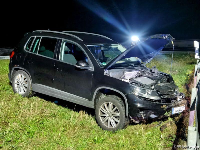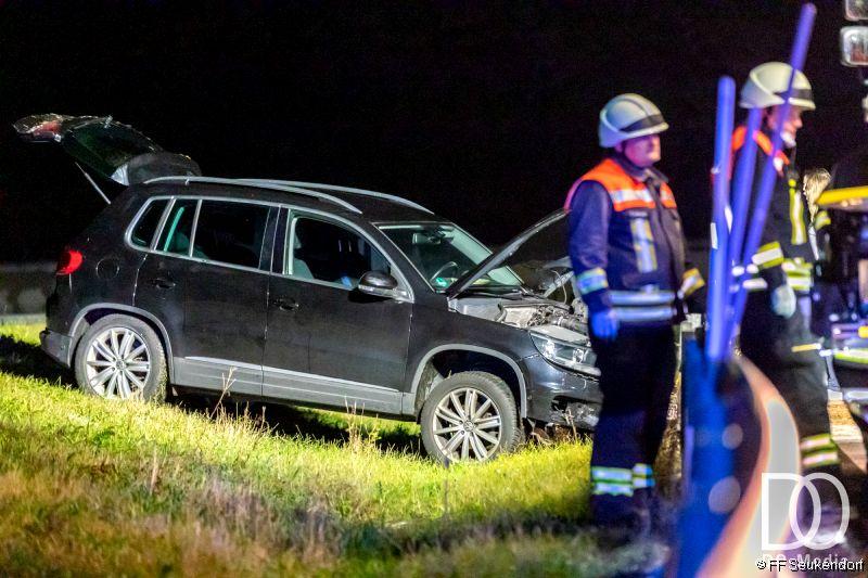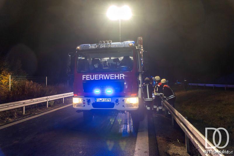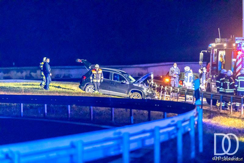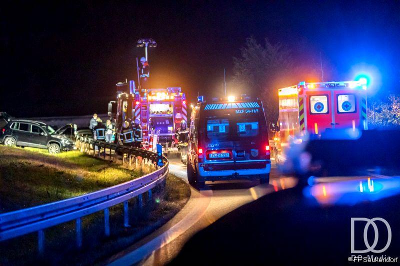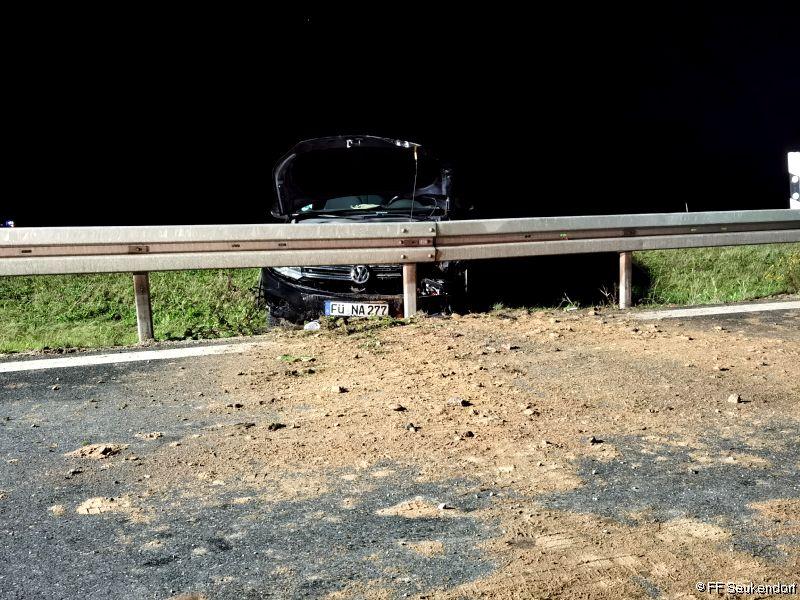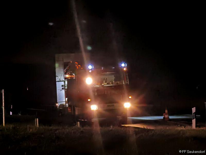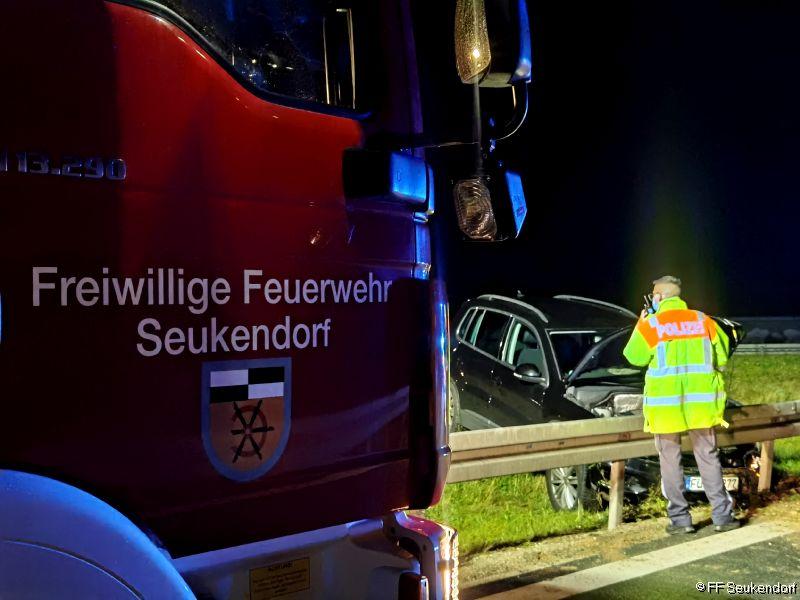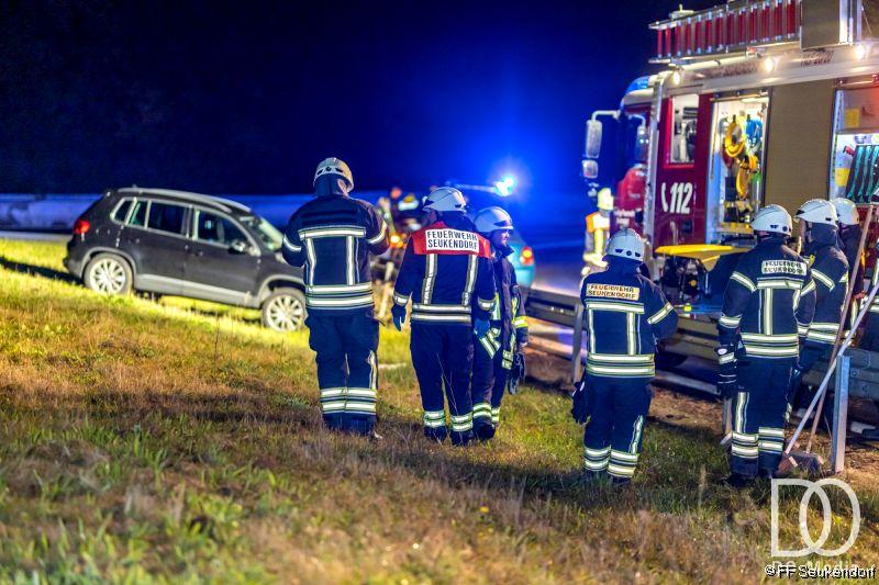 In der Nacht vom 05.10.2021 wurde auf Grund eines Verkehrsunfall die FF Seukendorf auf die B8 alarmiert. Ein Fahrzeug kam von Langenzenn kommend von der Fahrbahn ab und kam in der Ausfahrt Seukendorf auf der Grünfläche an der Leitplanke zum stehen. Der Fahrer blieb unverletzt. Die Einheiten aus Seukendorf sicherten die Einsatzstelle während der Unfallaufnahme durch die Polizei ab. Ebenso wurde bis zum Eintreffen des Abschleppunternehmens das Unfallfahrzeug gegen Brand und auslaufende Flüssigkeiten gesichert. Nach gut zwei Stunden konnten die Kräfte wieder einrücken.