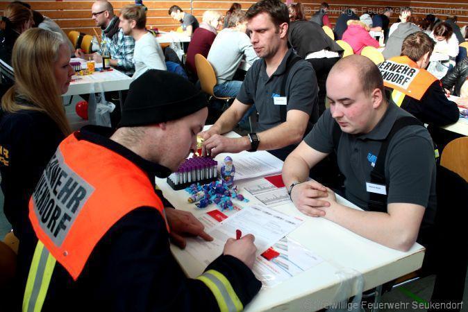 Am Samstag den 28.01.2017 führte die FF Seukendorf zusammen mit der Real- und Mittelschule Langenzenn eine Typisierungsaktion der DKMS für den 17 jährigen Tom aus Obermichelbach durch. Für uns gingen mehrere Wochen der Planung ins Land damit die Aktion auch so ablaufen konnte wie es dann am Samstag auch war. Jetzt fragen Sie sich bestimmt warum oder wie kommt die FF Seukendorf dazu sich da ins Zeug zu werfen? Ganz einfach, unsere Jugensprecherin Kathrin Lennert brachte den Stein ins Rollen, da unser Gerätehaus leider zu klein war um die erwartete Zahl der Personen vernüftig unter zu bringen, wurde der Sportverein SV Seukendorf gefragt ob wir nicht die Sporthalle nutzen können. Nur weil es nicht bei uns im Gerätehaus statt finden sollte hieß es dann nicht, die Feuerwehr hält sich raus… NEIN ganz dem Leitspruch der Feuerwehr „Gott zur Ehr dem NÄCHSTEN zur Wehr“ haben wir den Logistischen Teil übernommen. Der Erfolg vom Samstag zeigt uns das alles gut organisiert war, nicht umsonst konnten 2.536 Personen neu in die Datenbank der DKMS aufgenommen werden. Wer leider an diesem Termin nicht mehr typisiert werden konnte, der kann das jeder Zeit von zu Hause aus machen. Über die Homepage der DKMS kann man sich das Wattestäbchen zu schicken lassen und kommt nach Rücksendung ebenfalls in diese weltweite Datenbank. Wir bedanken uns natürlich bei allen freiwilligen Helfen die Großteils im Akord Regiestriet und Blutproben genommen haben. Ebenfalls geht ein großer Dank an die BRK Bereitschaften aus Stein und Burgfarrnbach für die Unterstützung im medizinischen Bereich. Zu Abschluß bleibt nur zu sagen, wir drücken die Daumen das der genetische Zwilling dabei war!