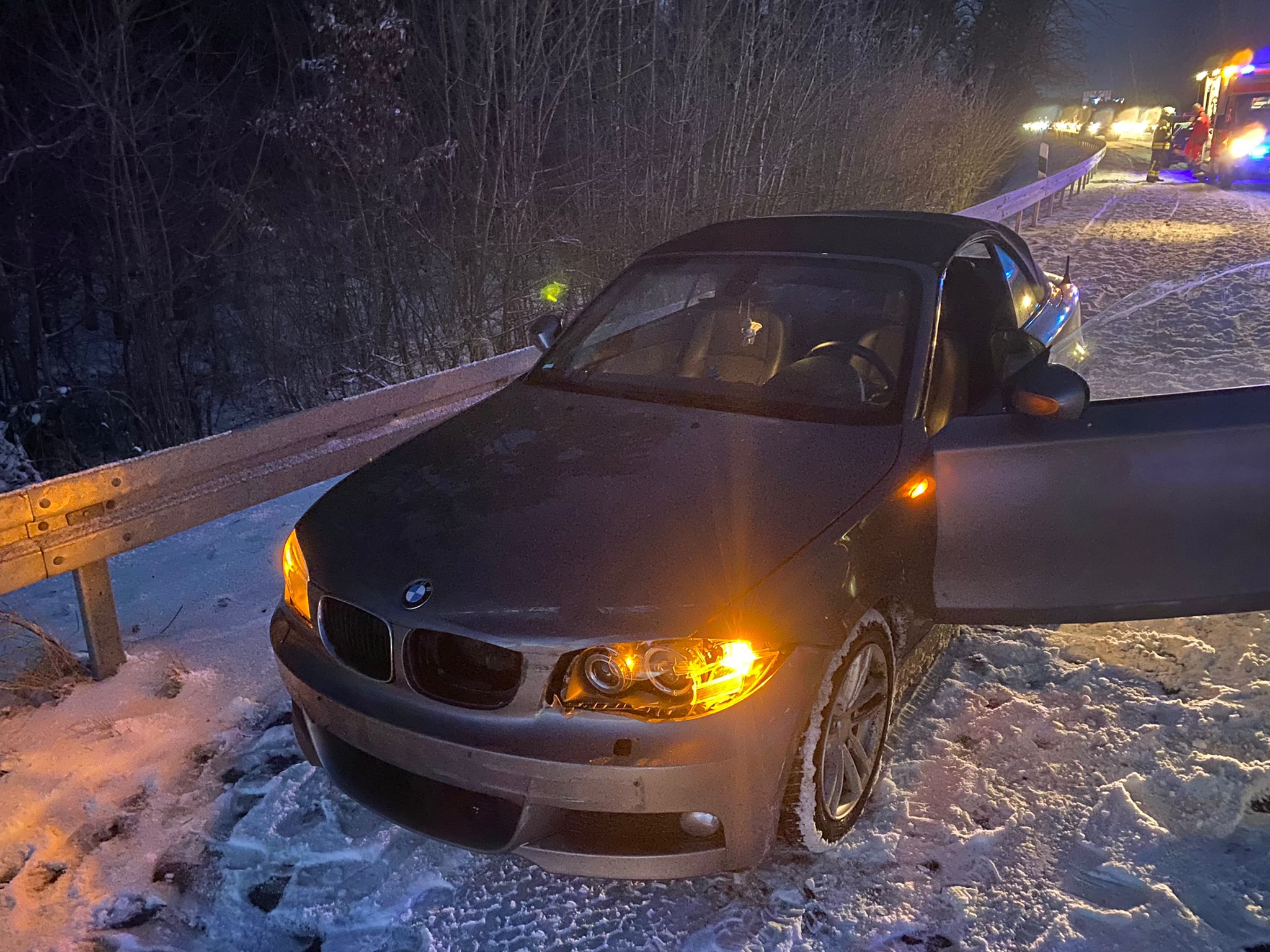 Nachdem am 21.01.2022 der erste Einsatz auf der B8 abgearbeitet war, wurden wir noch während des Abmarsch zum nächsten Unfall wegen Glätte alarmiert. Diesmal ging es auf die B8 in Fahrtrichtung Fürth in der Ausfahrt zur Bauschuttdeponie Fürth erwartete uns schon der Fahrer vom verunfallten Fahrzeug. Auch wie beim Einsatz vorher war hier ebenfalls nur ein Blechschaden zuvermerken ohne das Personen verletzt wurden. Die Dauer für Einsatz Nummer 2 und 3 bezog sich zusammmen auf eine Stunde.