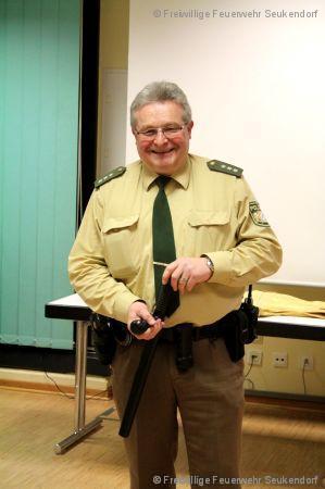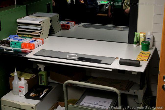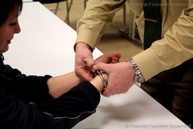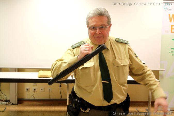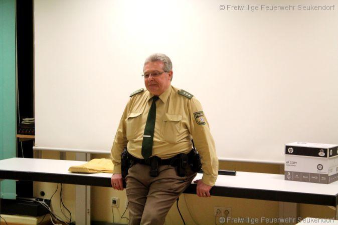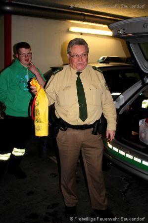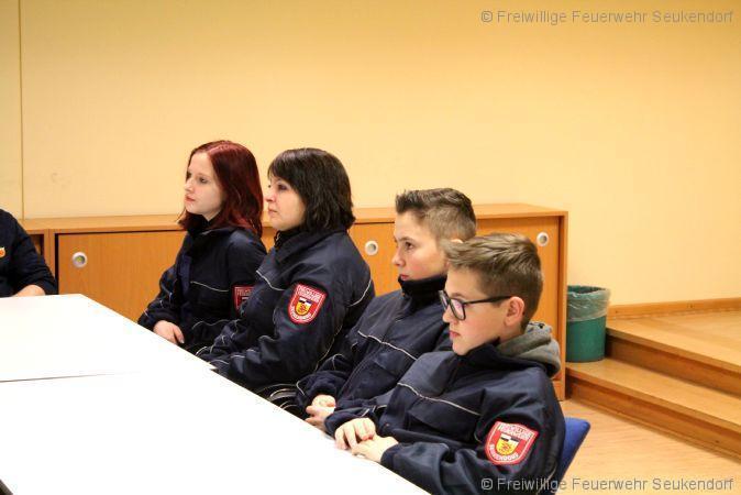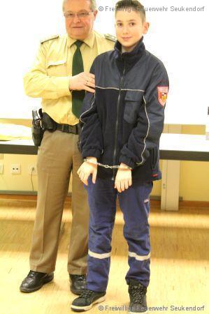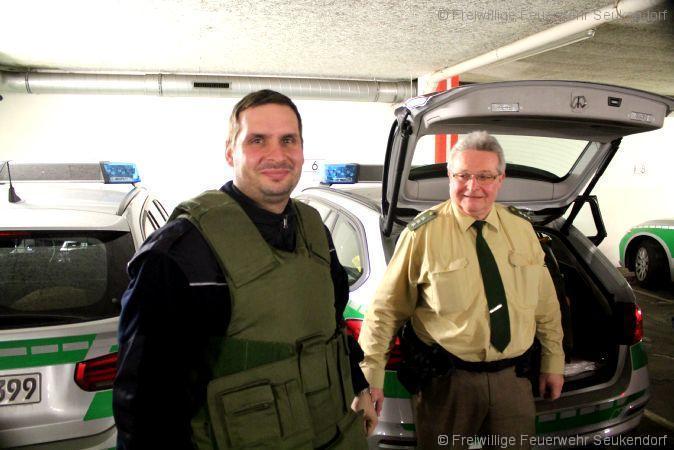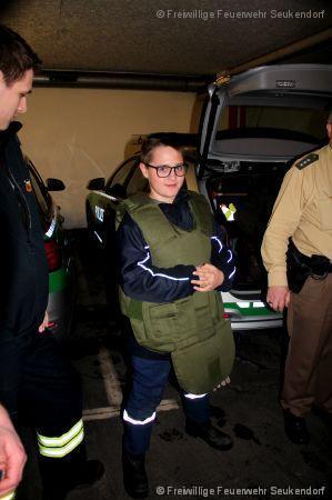 Die Jugendübung am 21.02.2017 führte uns in die Polizeiinspektion Fürth. Dort erwartete uns Michael Popp (auch aktives Mitglied in der FF Seukendorf) um uns durch den Abend zu führen. Zu Beginn der Führung erklärte uns Michael die Grund- und Eckdaten der Inspektion. Danach zeigte er den Jugendlichen die persönliche Schutzausrüstung eines jeden Polizisten im Freistaat Bayern. Natürlich durften alle Sachen auch genau unter die Lupe genommen werden. Der weiter Weg führte uns in den ersten Stock zur Spurensicherung. Dort wurde uns erklärt was im ersten Stock eigentlich von der Spurensicherung alles gemacht wird. Das geht über die Erkennung, das heißt Fingerabdrücke nehmen, Fotos machen und besondere Merkmale wie Tattoos etc. von Verdächtigen registrieren. Es gibt auch ein Labor in welchen DNA-Spuren gesichert werden. Dort darf aber nur bestimmtes Personal eintreten. Vom ersten Stock ging es ins Erdgeschoss, dort befindet sich die Einsatzzentrale der PI Fürth. Zwei Kollegen koordinieren dort die eintreffenden Notrufe. Ebenfalls im Erdgeschoss sind die Zimmer für die „Erstaufnahme“, dort nehmen zum Beispiel Alkoholsünder platz zur genauen Bestimmung ihres Alkoholgehalts. Im Keller befinden sich zum einem die Hafträume, in Fürth vier Einzelräume und ein Sammelraum. Die Übungsanlage zum schießen, damit die Polizisten immer fit im Beherrschen ihrer Waffe sind. und ein Dojo. In der Tiefgarage durften wir noch einen Streifenwagen besichtigen und die Beladung genau anschauen. Nach gut zwei Stunden war die Führung beendet und wir konnten mit vielen Informationen und Eindrücken die Heimfahrt antreten. Auf diesen Wege vielen Dank an Michael Popp und seine Kollegen das wir auf die Dienststelle kommen durften.