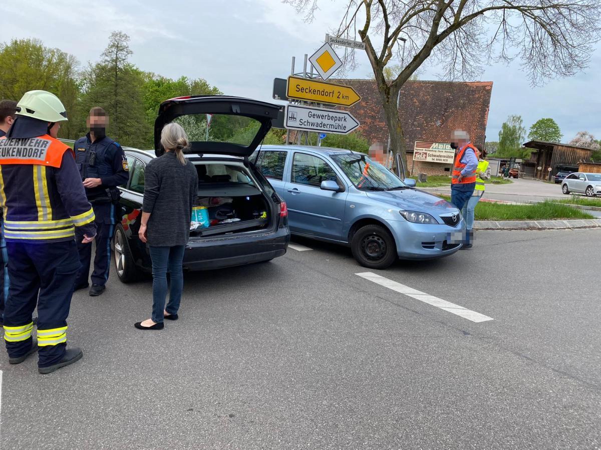 Am Vormittag des 06.05.2022 wurde die Freiwillige Feuerwehr Seukendorf zu einem Verkehrsunfall auf die ST2409 alarmiert. Die Einsatzstelle lag bei der Einmünundung in das Industriegebiet Schwadermühle, da dies zum Zuständigkeitsbereich der Freiwilligen Feuerwehr Cadolzburg gehört, veranlasste der Einsatzleiter das die Leitstelle Nürnberg die Kollegen aus Cadolzburg über den laufenden Einsatz in Kenntniss setzen sollte. Vor Ort waren alle beteiligten bereits aus den Fahrzeugen und tauschten die Kontaktdaten aus. Der automatisch mitalarmierte Rettungsdienst kümmerte sich darum das die Personen sich einer kurzen Behandlung unterzogen und die Polizei begann it der Unfallaufnahme. Für die Dauer dieser Maßnahmen übernahm die FF Seukendorf die Verkehrsabsicherung.