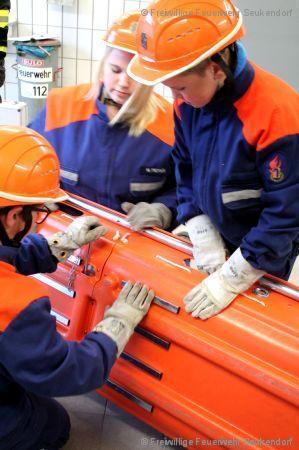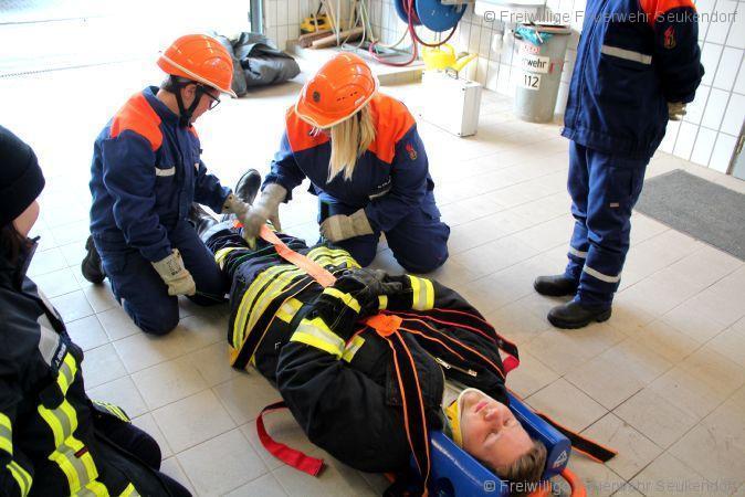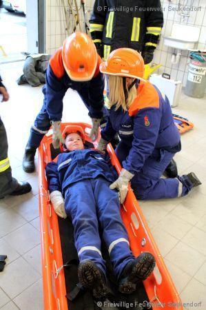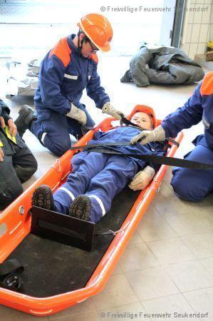 Am 18.04.2017 übten wir mit den Jugendlichen der JF Seukendorf den Umgang mit den am Standort vorhanden Tragen. Es wurde der richtige Umgang mit Patienten auf der Trage, das Tragen selbst und natürlich auch die Pflege von unserem Material behandelt. Als kleine Wiederholung wurden dann noch eine kleine HLW Übung eingebaut.
