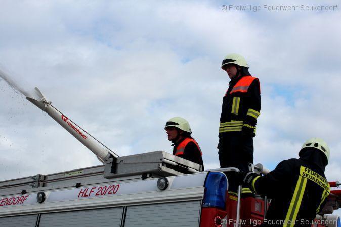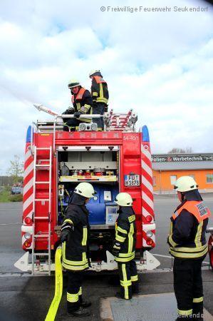 Am Sonntag den 23.04.2017 waren wieder die Maschinisten der FF Seukendorf gefordert. In einer ihrer jährlichen Übungen wurde wieder der Umgang mit den festverbauten Pumpen geübt. Hierzu ging es in das Industriegebiet am Seukenbach. Leider wurde die Übung früh durch einen technischen Defekts an der Wasserleitung unterbrochen.
