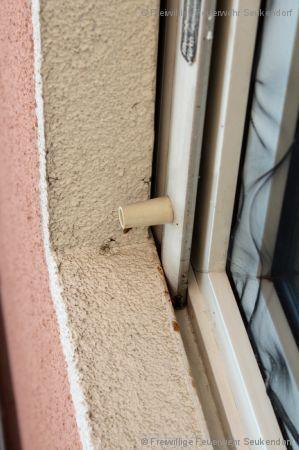 Dieses wurde in einem Rollokasten gefunden, und durch die Öffnung vom Rollogurt gelangten die Wespen in den Wohnraum.