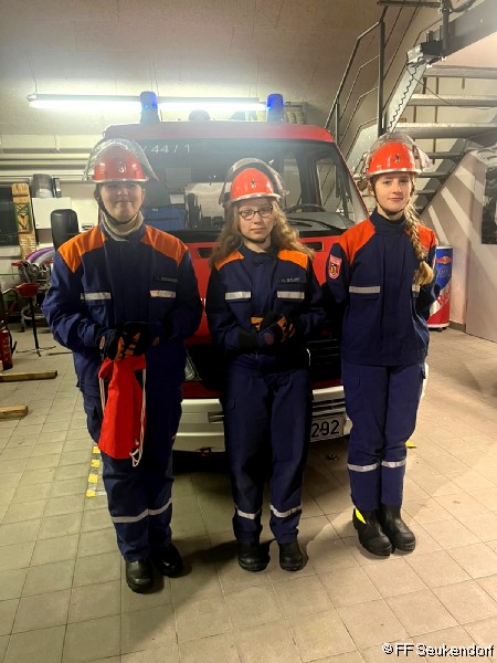 Am 29.01.2024 wurde die Jugendflamme Stufe 1 für drei Mädchen unserer Jugendfeuerwehr abgenommen. Diese Stufe kann und darf vom eigenen Jugendwart abgenommen werden. In zwei Wochen haben die drei Prüflinge ihr Wissen erweitert und ergänzt, sowie ein paar kleine technische Handgriffe gelernt.