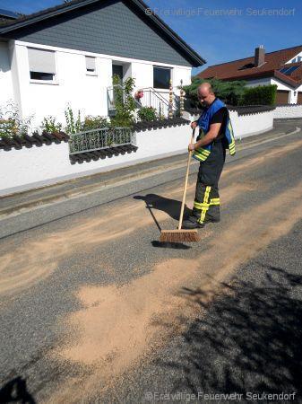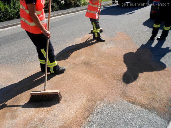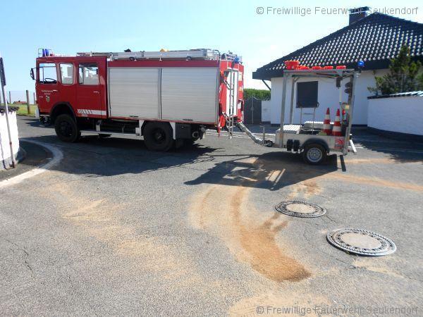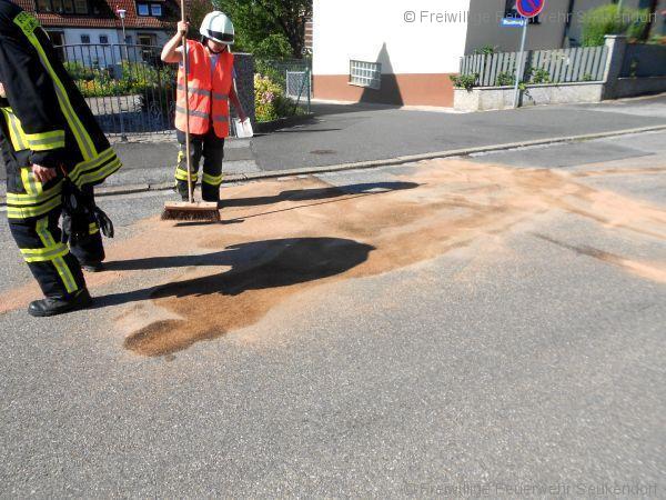 Der Sonntagmorgen am 16.07.2017 begann für die jüngeren Floriansjünger wohl anders als erwartet. Kurz nach 9:00 wurde die FF Seukendorf durch die ILS Nürnberg zu einer Dieselspur im Ortsgebiet Seukendorf alarmiert. Auf Grund eines technischen defekts an einem PKW wurde eine Spur von Diesel über zwei Straßenzüge gezogen. Die Einheiten der FF Seukendorf bindeten mit Absprache einer Polizeistreife den Kraftstoff und entsorgten das kontaminierte Material. Nach ca. einer Stunde rückten die Einheiten wieder in das Gerätehaus ein. Danach wurden die Fahrzeuge wieder einsatzklar gemacht, das heißt Ölbinder aufgefüllt und der grobe Dreck beseitigt.