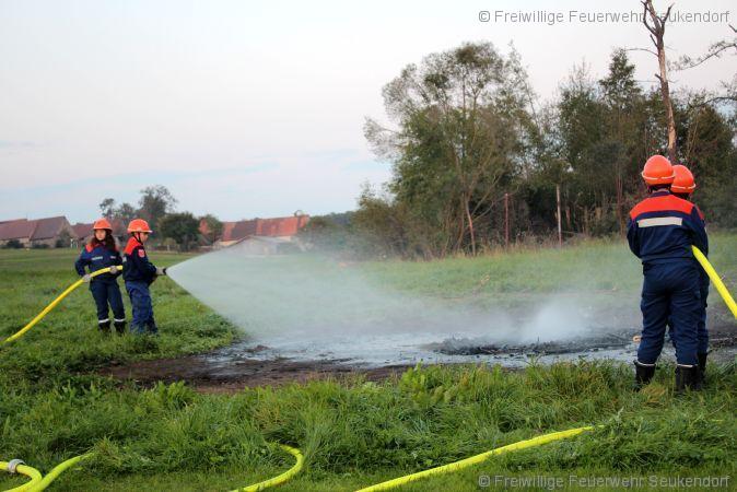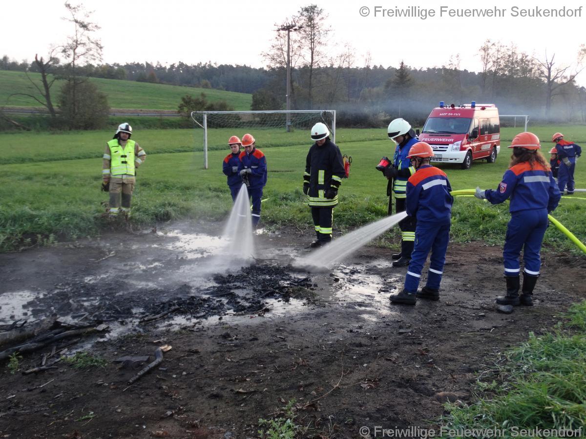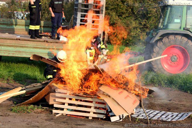 Nach dem Feiern kommt wieder der Alltag …. Nachdem wir hauptsächlich Holz und Pappe beim Bau von unseren Kärwawagen verwenden ist es schon fast „Tradition“ das wir im Anschluß an die Kärwa eine Übung zu Thema Brennen und löschen machen. Dort sehen die Jugendlichen wie sich das Feuer der Brandklasse A verhält und wie es von unserer Seite her zu bekämpfen ist. Danke an unseren Schützenverein, welcher uns erlaubt auf Ihrem Stück Wiese diese Übung abzuhalten.